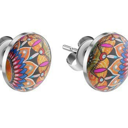 Ohrstecker mit Glaskuppel ‚orange mandala‘