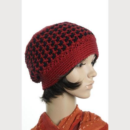 Haube – „Marlene“ rot/schwarz