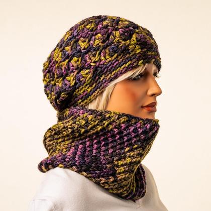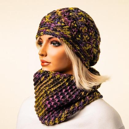 Set aus Haube und Loop - handgefertigt aus bester, handgefärbter Merino-Schurwolle.