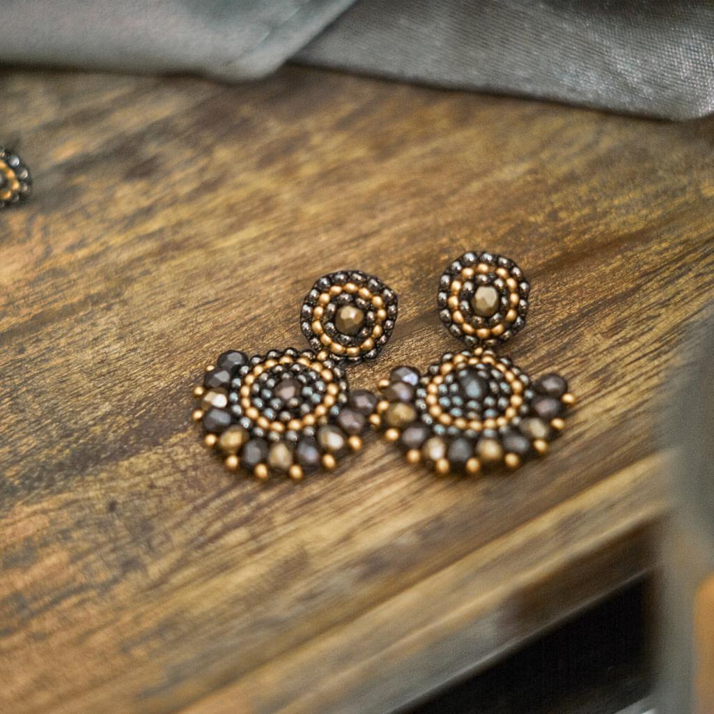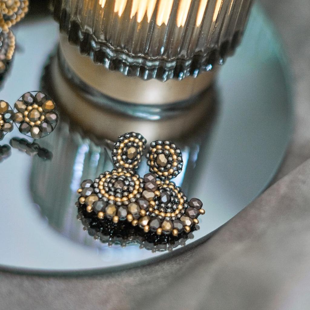 Handgefertigtes Einzelstück - Ohrringe für den besonderen Moment Größe: Gesamtlänge: 3,5 cm Farbe: schimmerndes Grau und Gold Material: hochwertige böhmische Glasperlen und geschliffene Glasperlen, reißfestes Nylongarn, Stecker ist nickelfrei Ich freue mich auf deine Anfrage oder einen Besuch auf Instagram @oree_handmadejewelry