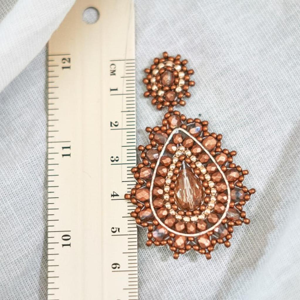 Handgefertigtes Einzelstück - Ohrringe für den besonderen Moment Gesamtlänge: 6,5 cm Farbe: Kupfer Material: hochwertige böhmische Glasperlen und geschliffene Glasperlen, reißfestes Nylongarn, Stecker ist nickelfrei Ich freue mich auf deine Anfrage oder einen Besuch auf Instagram @oree_handmadejewelry