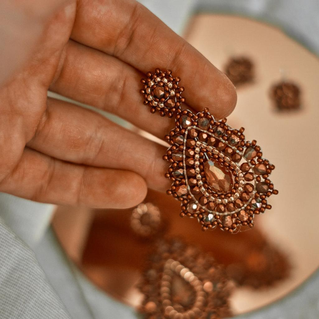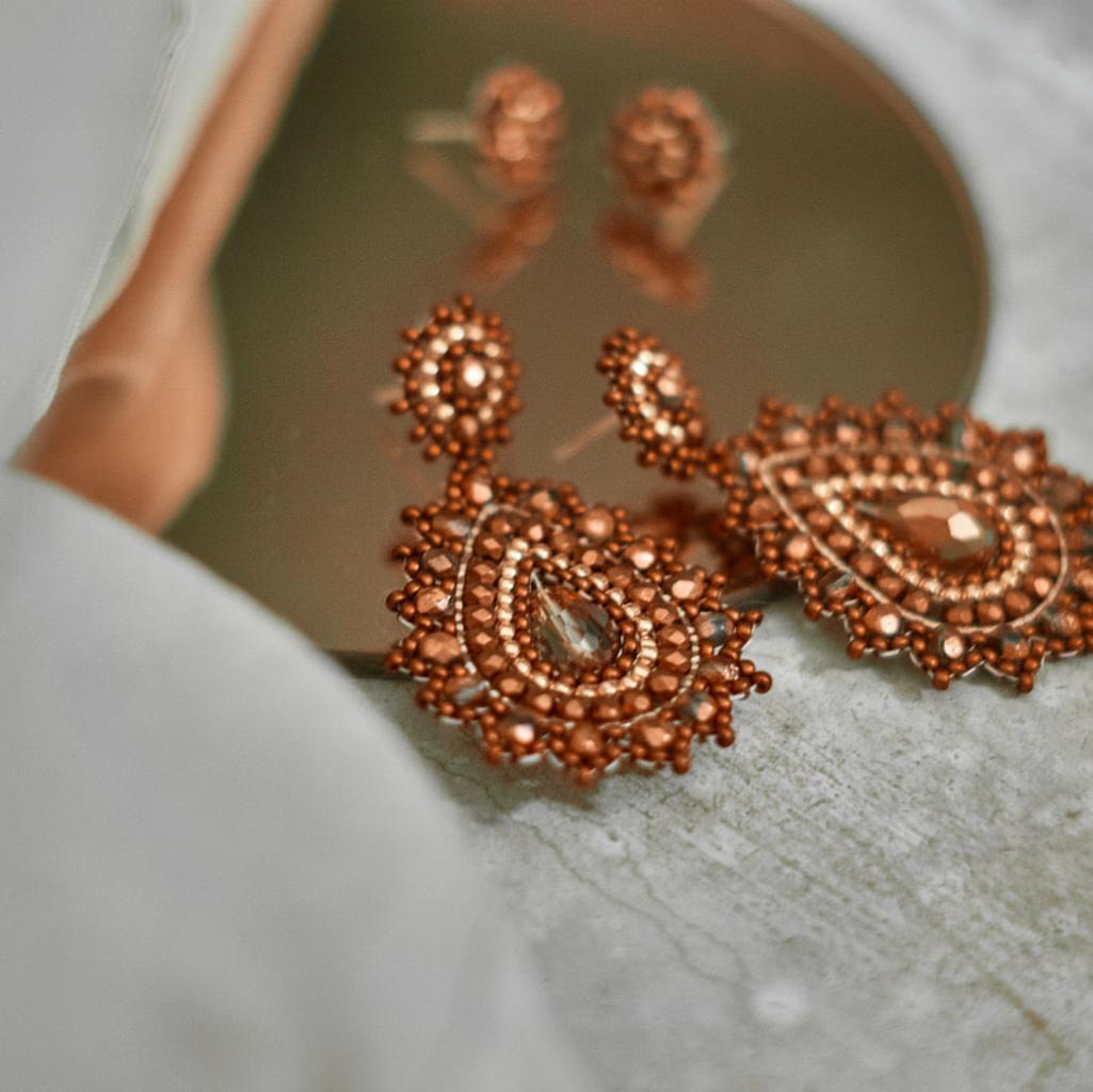 Kupferfarbene Perlenohrringe Modell Isabella