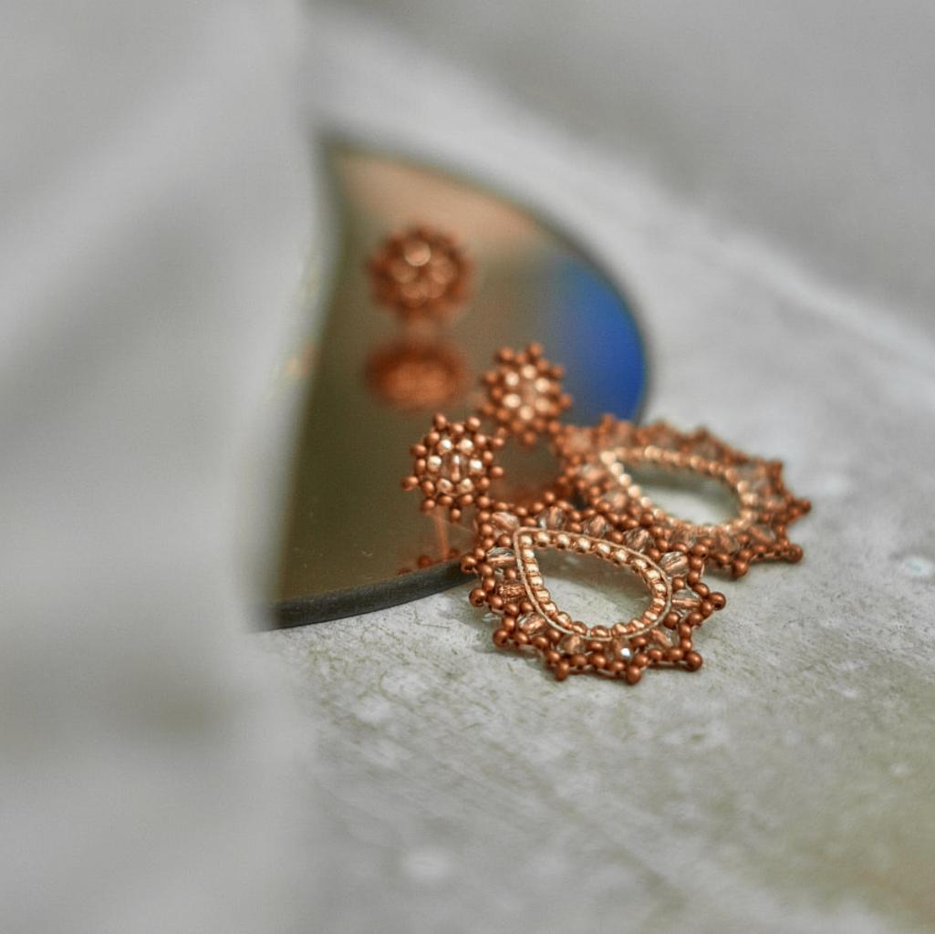 Handgefertigtes Einzelstück - Ohrringe für den besonderen Moment Größe: Gesamtlänge: 4,5cm Farbe: Rosé Material: hochwertige böhmische Glasperlen und geschliffene Glasperlen, reißfestes Nylongarn, Stecker ist nickelfrei Ich freue mich auf deine Anfrage oder einen Besuch auf Instagram @oree_handmadejewelry