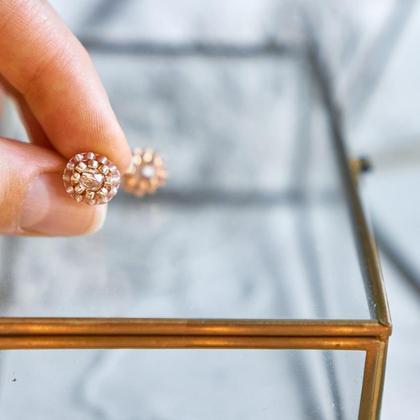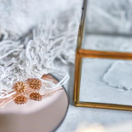 Handgefertigtes Einzelstück - Ohrringe für den besonderen Moment Größe: 1 x 1 cm Farbe: Rosé Material: hochwertige böhmische Glasperlen und geschliffene Glasperlen, reißfestes Nylongarn, Stecker ist versilbert und nickelfrei Ich freue mich auf deine Anfrage oder einen Besuch auf Instagram @oree_handmadejewelry