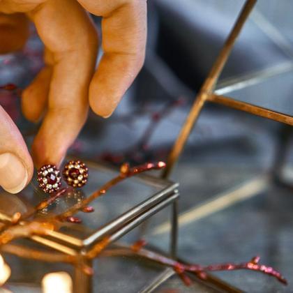 Handgefertigtes Einzelstück - Ohrringe für den besonderen Moment Größe: 1 x 1 cm Farbe: Rot und Gold Material: hochwertige böhmische Glasperlen und geschliffene Glasperlen, reißfestes Nylongarn, Stecker ist versilbert und nickelfrei Ich freue mich auf deine Anfrage oder einen Besuch auf Instagram @oree_handmadejewelry