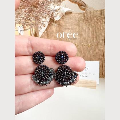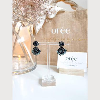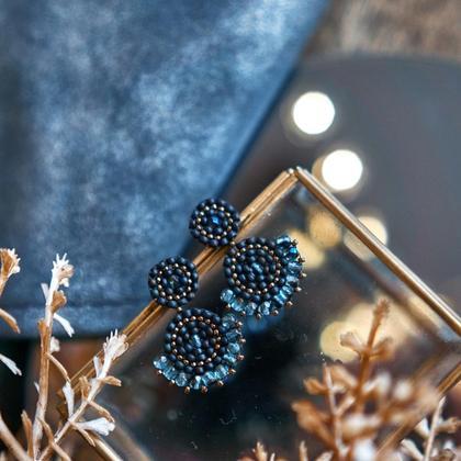 Perlenohrringe Modell Valerie in mattem Blau und Kupfer