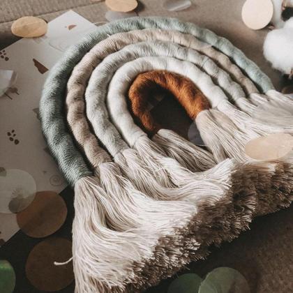 the fairy dance Jeder Regenbogen ist ein Unikat, liebevoll handgeknüpft. Farbe: helles türkis, beige, hellgrau, weiß, rost Höhe: 15 Zentimeter; Breite: 15 Zentimeter Handgefertigter Makramee-Regenbogen. Mit und ohne pom poms- Kranz verfügbar. Baby- und Kinderzimmer-Deko, tolles Geschenk für Babyshower oder Kindergeburtstag 100% Baumwolle