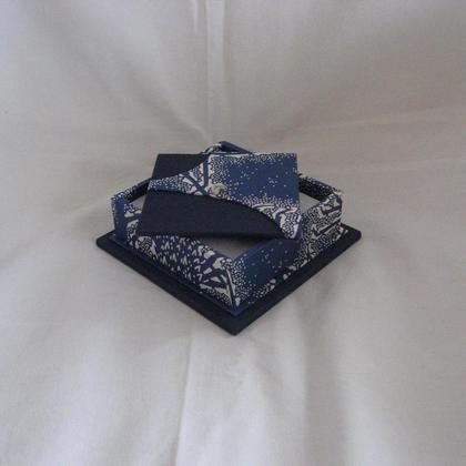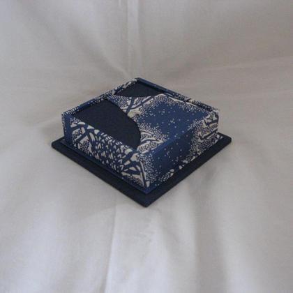 Zettelkasten aus blauem japanischem Papier mit Deckel und Basis aus blauem Buchbinderleinen 12x12x5