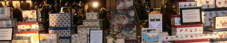 Die Rohlinge werden aus 3mm starker Graupappe, mit Spezialkleber und nach einerTrockenzeit außen und innen mit hochwertigen Geschenkpapier bezogen.