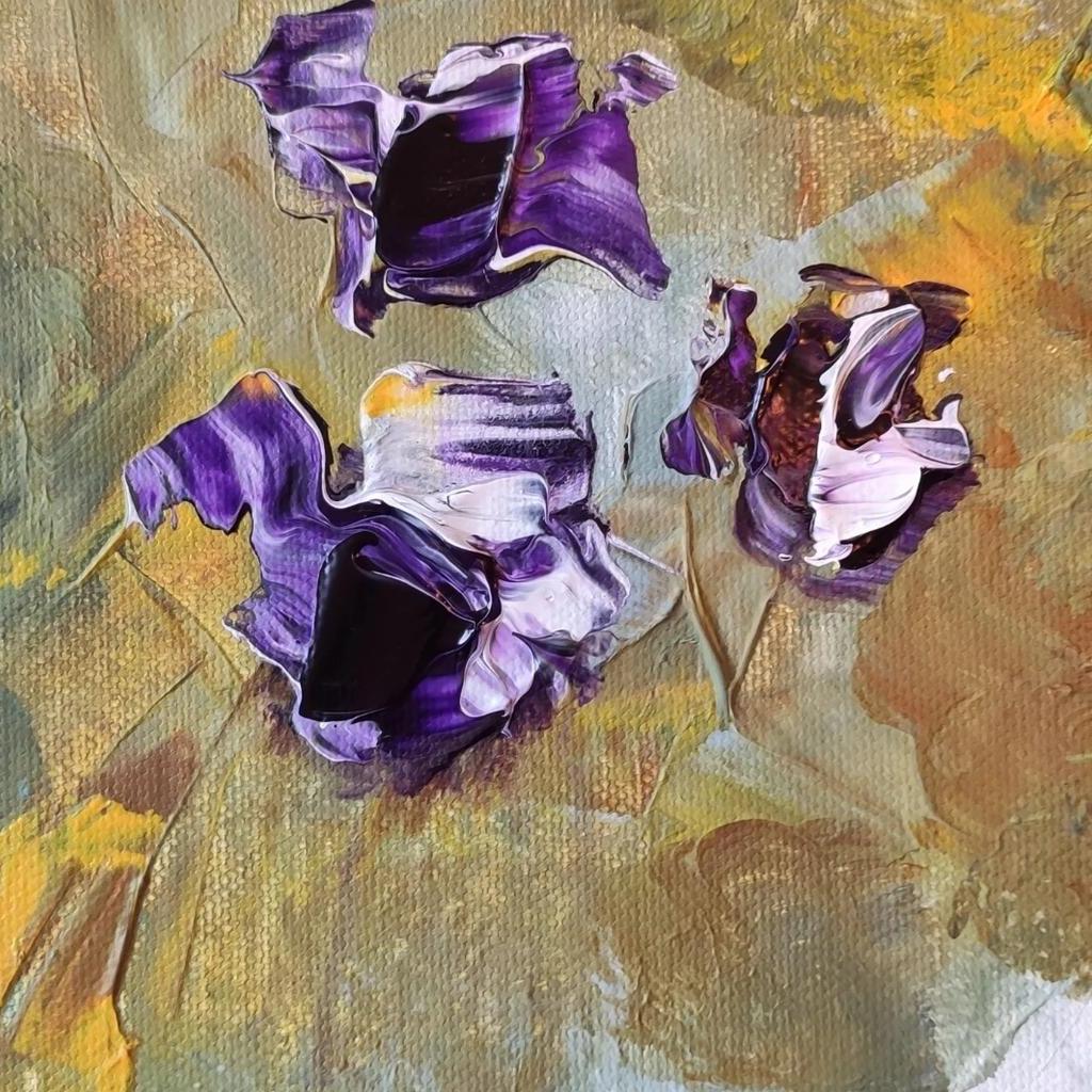 Abstraktes Acrylbild auf Leinwand mit Spachteltechnik angefertigt. Größe 30 x 30 cm Farben: Jadegrün, Anthrazit, Gelb, Violett, Weiß