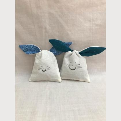 --Osterhäschen-- Das Häschen kann mit Süßigkeiten gefüllt werden, zuknoten und verschenken. Größe: Höhe 9 cm Breite 10 cm Das Häschen wird aus Baumwollstoffresten oder alten Hemden usw. hergestellt, damit wir die Umwelt ein klein wenig schützen. Bitte Farbwunsch bekannt geben oder einfach überraschen lassen.