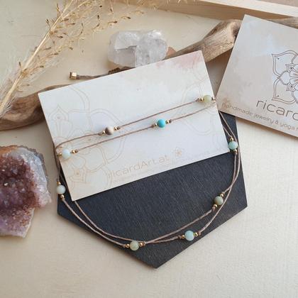 Amazonit – Türkis Doppelarmband *18k vergoldet/sandfarben