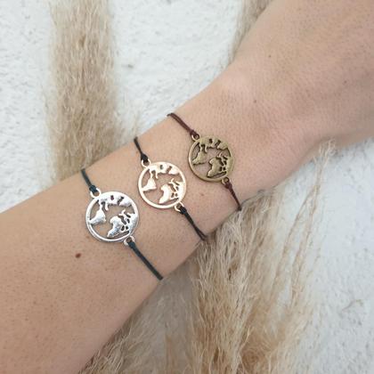 Das Armband lässt sich durch den längenverstellbaren Schiebeknoten perfekt an jedes Handgelenk anpassen. Das gewachste Polyestergarn (Makrameegarn) ist sehr widerstandsfähig und darf auch nass werden.