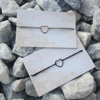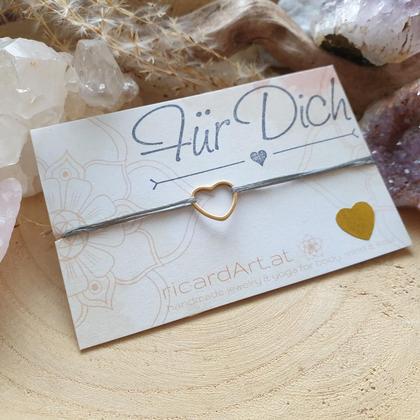 Zartes, wasserfestes Armband mit Herz-Verbinder aus hochwertig vergoldetem Edelstahl, strapazierfähigem Band aus gewachstem Makrameegarn & längenverstellbarem Schiebeverschluss zum individuellen anpassen