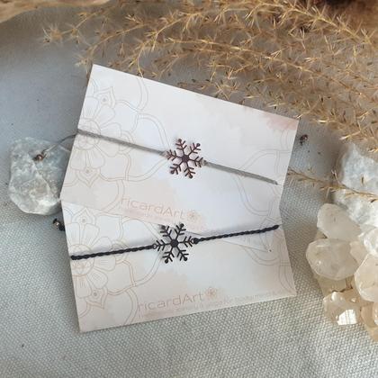 Winterliche Armbänder aus gewachstem Makrameegarn (strapazierfähig & wasserfest), mit nickelfreien Messingverbindern in silber oder roségold & längenverstellbarem Schiebeverschluss zum individuellen Anpassen