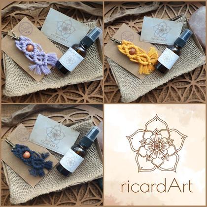 GESCHENKESET bestehend aus: - 30ml Aromaspray 'Lavendel' (wahlweise Ylang-Ylang oder Sandelholz) - Schlüsselanhänger aus 100%iger Baumwolle (~ 12cm lang) in vielen verschiedenen Farben Ein perfektes Geschenk - ob für dich, oder eine/n deiner Lieben