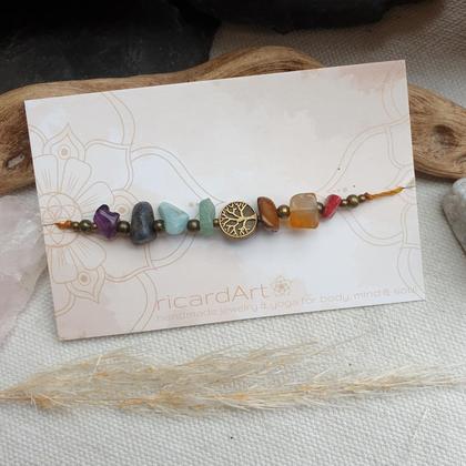 Kraftvolles Edelsteinarmband aus wasserfestem Makrameegarn (gewachst & strapazierfähig), mit 7 natürlichen Edelsteinen in ungeschliffener Form, 10mm Lebensbaum in antikem Bronze, gold oder silber. Mit längenverstellbarem Schiebeverschluss zum individuellen anpassen *du bekommst dein Armband hübsch verpackt & mit persönlichem Steckbrief beigelegt auf dem du die wichtigsten Infos zu deinem neuen Begleiter nachlesen kannst