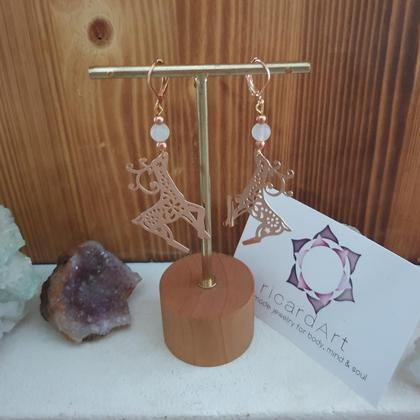 Passend zur Weihnachtszeit Aus roséfarbenem, nickelfreien Messing mit Rosenquarzperlen. Höhe: ~6cm Ohrhaken: rosévergoldeter Edelstahl
