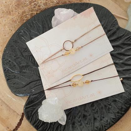 Hochwertige Edelsteinarmbänder aus strapazierfähigem Makrameegarn (gewachst & wasserfest), mit natürlichem Citrin oder Aventurin (4-6mm), 18k vvergoldeten Messingperlen (~2mm) & echtvergoldetem Edelstahlverbinder (nickelfrei, langlebig & wasserfest) Dank längenverstellbarem Schiebeverschluss sind die Armbänder an jedes Handgelenk individuell anpassbar *du bekommst dein Armband hübsch verpackt in einer handbedruckten Box aus recyceltem Altpapier, mit persönlichem Steckbrief beigelegt, auf dem du die wichtigsten Infos zu deinem neuen Begleiter nachlesen kannst