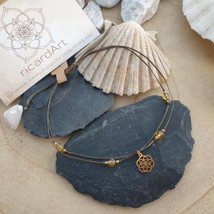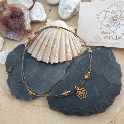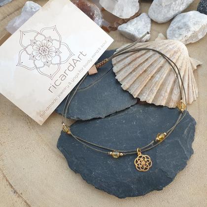 CITRIN Fußkettchen *SEED OF LIFE gold/oliv