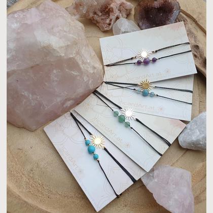 Handgefertigte Doppelarmbänder mit den Edelsteinen deiner Wahl ♡ Von Hand gefertigt aus gewachstem, sehr strapazierfähigem Makrameegarn (wasserabweisend & langlebig), mit Verbindungsstück aus nickelfreiem Messing (versilbert/vergoldet 14mm) & längenverstellbarem Schiebeverschluss zum individuellen anpassen. 》Du bekommst dein Armband liebevoll im Naturleinenbeutel verpackt, mit persönlichem Steckbrief beigelegt auf dem du die wichtigsten Infos zu deinem neuen Begleiter nachlesen kannst AMAZONIT (Halschakra/Viśuddha) Gelassenheit ~ innere Ruhe & Balance ~ Frieden ~ Der ANTI-STRESS-STEIN oder auch 'Ärger dich nicht Stein' genannt Im hektischen Berufsalltag der ideale Begleiter & Ruhepol. Auch bei Wut, Ärger & Frust unterstützt er dich dabei deinen Weg in die Gelassenheit zurückzufinden -> mit Körperkontakt tragen! Sternzeichen: Skorpion Ein wunderbarer Wegblegleiter für jeden Tag♡