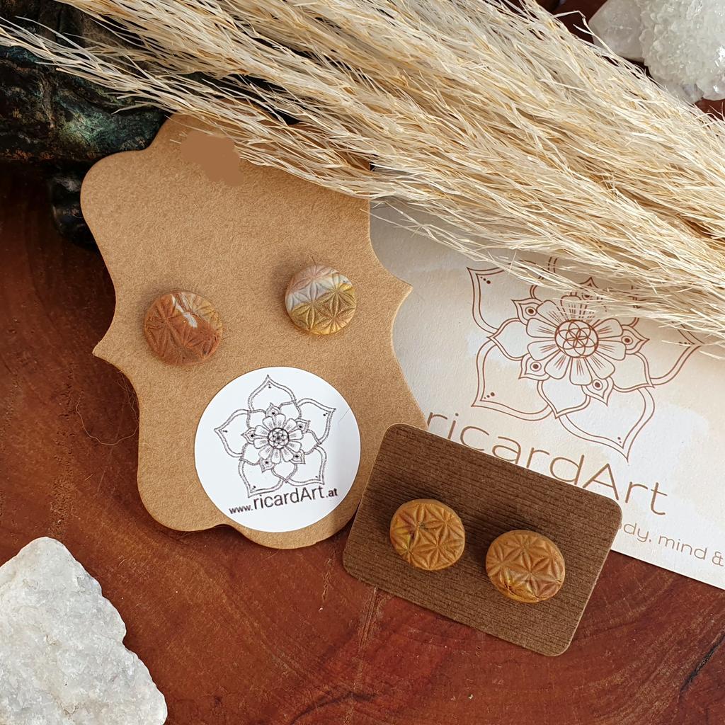 Nickelfreie Ohrstecker mit handgefertigten Fimo Applikationen in verschiedenen Farben & Designs. Die verwendeten Ohrstecker/Rohlinge snd aus hochwertigem Edelstahl, nickelfrei & wasserfest. Aufgrund des individuellen Farbverlaufs ist jedes Stück absolut einzigartig! Durchmesser: ~12mm *du bekommst deine Ohrringe hübsch vepackt in einer handbedruckten Box aus recyceltem Altpapier - individuell & umweltfreundlich