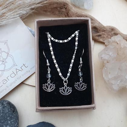 Zartes Schmuckset aus 925 Sterlingsilber (Halskette & Lotusanhänger) bestehend aus Ohrringen mit 4mm Bergkristallperlen & einer Halskette mit Karabinerverschluss & Verlängerungskettchen. *du bekommst dein Schmuckset hübsch verpackt in einer handbedruckten Box aus recyceltem Altpapier & mit persönlichem Steckbrief beigelegt, auf dem du die wichtigsten Infos zu deinem neuen Begleiter nachlesen kannst BERGKRISTALL (Kronenchakra/Sahasrãra) Klarheit ~ Intuition ~ Geisteskraft ~ Erkenntnis ~ Konzentration Der Bergkristall gehört zu den Quarzen & ist einer der wichtigsten & stärksten Heilsteine überhaupt. Er verhilft uns zu innerer Klarheit & geistiger Reife und ist uns ein wertvoller Begleiter am Weg zu sich Selbst. Er wird außerdem zur Aufladung anderer Edelsteine verwendet & sollte auch selbst regelmäßig gereinigt/ ge-/entladen werden. (Sternzeichen: Steinbock)