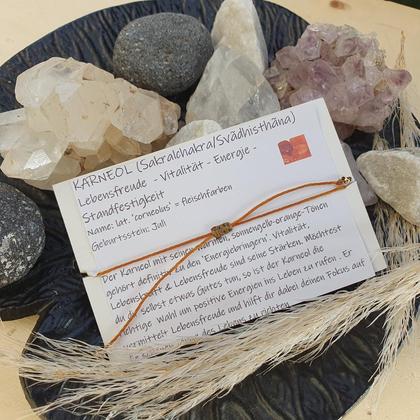 Dein Geburtsstein Armband soll dich darin bestärken, deinen Träumen, Wünschen & Zielen näher zu kommen. *Denke dafür beim Anlegen des Armbands ganz fest an deinen Wunsch/ dein Ziel - wenn es von alleine abfällt, so sagt man, solltest du deinem Ziel schon etwas näher sein/es erreicht haben "put the bracelet arround your wrist, close your eyes and make a wish" Eine nette Möglichkeit um seine Ziele & Träume zu visualisieren & zu manifestieren Material: gewachstes Makrameegarn (strapazierfähig & wasserabweisend), facettierter Karneol mit ca. 3mm Durchmesser, 18k vergoldete Kupferperlen & längenverstellbarer Schiebeverschluss zum individuellen Anpassen. Du bekommst dein Armband hübsch verpackt & mit persönlichem Steckbrief beigelegt auf dem du die wichtigsten Infos zu deinem neuen Begleiter nachlesen kannst. KARNEOL (Sakralchakra/Svãdhisthãna) Lebensfreude  - Vitalität - Energie - Standfestigkeit  Der Karneol mit seinen warmen gelb-orange Tönen ist ein richtiger Powerstein, denn Vitalität & Lebenskraft zählen zu seinen größten Stärken. Die positive Energie des Karneols stärkt Lebenskraft und Lebensfreude & hilft dir so dabei deinen Fokus auf die schönen Dinge des Leben zu richten Geburtsstein Monat: Juli