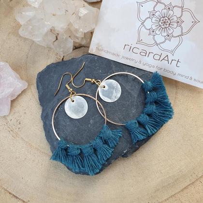 Makramee Ohrringe *SEASHELL CIRCLES* 40mm petrol