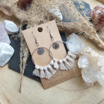 Makramee Ohrringe *SEED OF LIFE Circle silber/natur