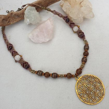 Makrameekette ‚Lebensblume gold‘