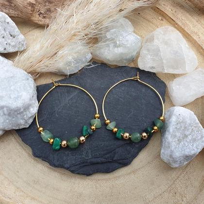 Malachit – Aventurin Creolen *Edelstahl