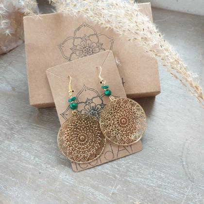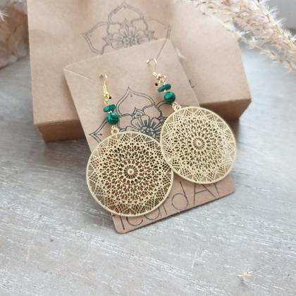 Strahlender Ohrschmuck mit natürlichem Malachit in seiner wunderschönen & einzigartigen Form ♡ Die Ohrhaken aus nickelfreiem, echtvergoldetem Edelstahl sind auch für sensible Ohren geeignet Die Pendants aus hochwertig vergoldetem Kupfer in Kombination mit natürlichem Malachit in seinen wunderschönen & einzigartigen Grüntönen machen die Ohrringe zu einem echten Hingucker. Gesamtlänge der Ohrringe (ohne Ohrhake): ~ 7cm