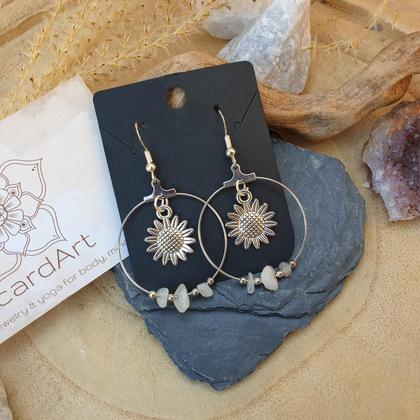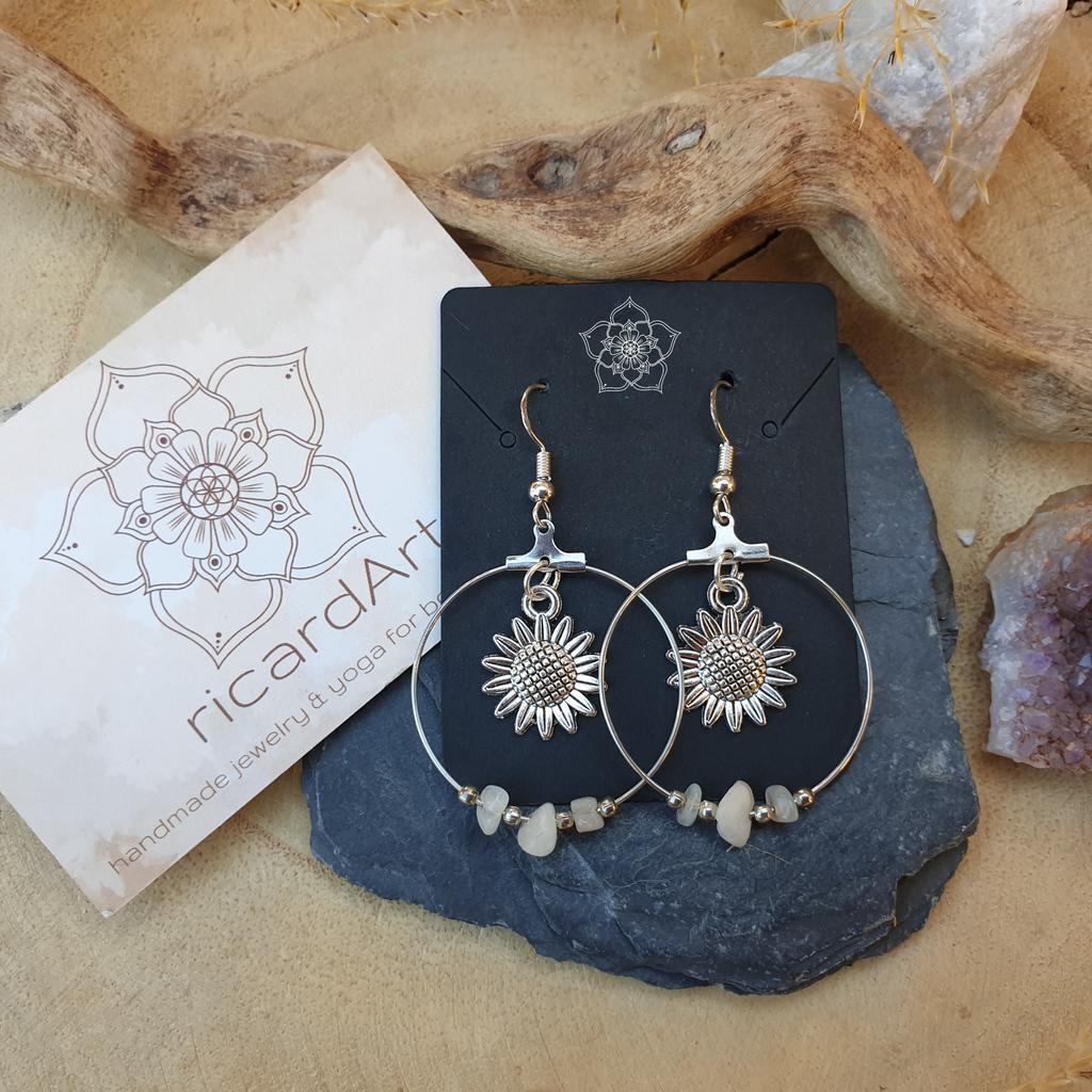 Mondstein Creolen *SUNFLOWER* 30mm silber