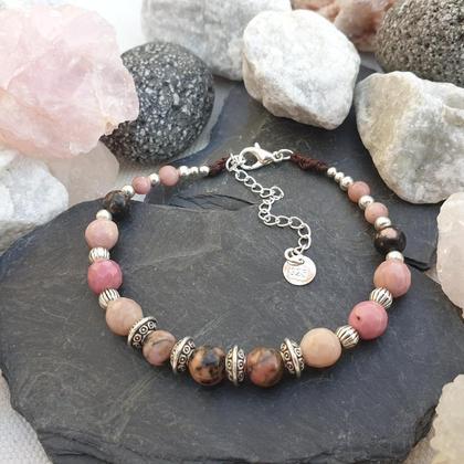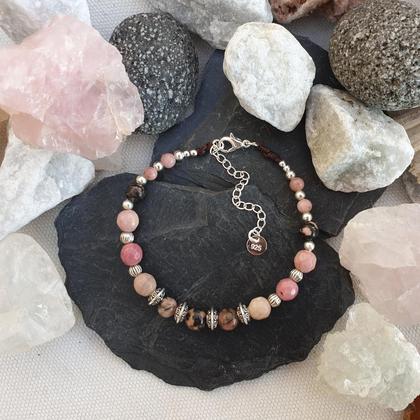 Ein wertvoller & treuer Begleiter wenn es darum geht loszulassen, neue Hürden positiv zu meistern & den Blick wohlgesinnt nach vorne zu richten ♡ Von Hand gefertigtes Edelsteinarmband mit Karabinerverschluss inkl. Verlängerungskettchen aus 925 Sterlingsilber. Mit Rhodochrosit & Rhodonit 》Du bekommst deinen Schatz in einer hübschen Aufbewahrungsbox aus recyceltem Altpapier, mit beigelegtem Steckbrief auf dem du die wichtigsten Infos zu Deinem neuen Begleiter nachlesen kannst 》RHODOCHROSIT  (Herzchakra/Anãhata) Kreativität ~ Lebensfreude ~ Wandel ~ Vitalität Schenkt dir neue Perspektiven & ist in Zeiten des Wandels ein treuer und unterstützender Begleiter ♡ Vitalität & Lebensfreude werden gestärkt und die positiven Dinge des Lebens rücken mit diesem rosaroten Schatz immer mehr in den Vordergrund ♡  Der Rhodochrosit wird außerdem auch bei Hauptproblem angewendet (direkter Hautkontakt oder mit Edelsteinwasser)