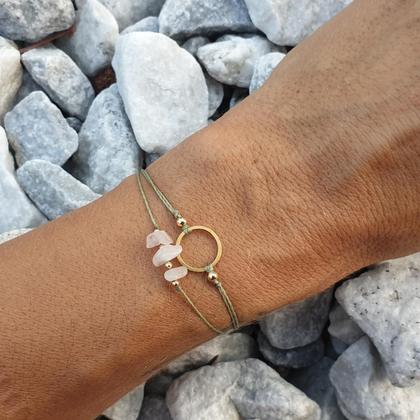 ROSENQUARZ Doppelarmband *CIRCLE 18k vergoldet