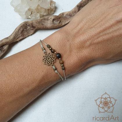 Ein feiner Wegbegleiter für jeden Tag ♡ Das Doppelarmband lässt sich durch den längenverstellbaren Schiebeknoten an jedes Handgelenk individuell anpassen. Aus gewachstem Makrameegarn (sehr widerstandsfähig & wassertauglich) von Hand gefertigt. Messingverbinder/Legierung bronze mit 14mm Durchmesser. Das TIGERAUGE (Solarplexuschakra) gilt als 'Entscheidungs-Stein', der dich darin unterstützen soll in unüberschaubaren Situationen den Durchblick zu bewahren Außerdem wird er dazu verwendet negative Energien fernzuhalten