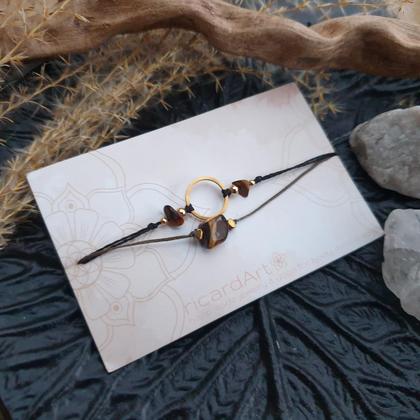 Kraftvolles Armband, von Hand gefertigt aus wasserfestem, sehr widerstandsfähigem Makrameegarn (gewachst) - mit natürlichem Tigerauge, goldenem Hämatit & 12mm Circle aus 18k vergoldetem Edelstahl Dank längenverstellbarem Schiebeknoten an jedes Handgelenk individuell anpassbar 》Du bekommst dein Armband mit persönlichem Steckbrief beigelegt, auf dem du die wichtigsten Infos zu deinem neuen Begleiter nachlesen kannst - individuell & umweltbewusst verpackt in einer handbedruckten Box aus recyceltem Altpapier 《