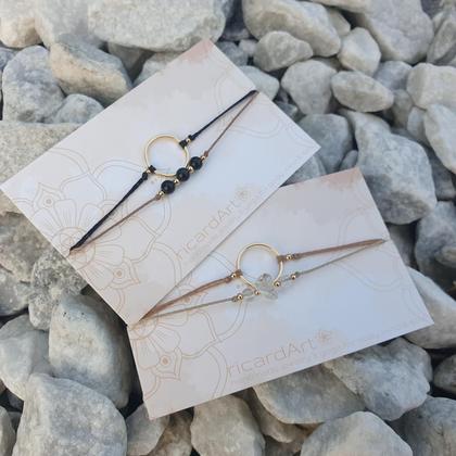Hochwertige Doppelarmbänder (nickelfrei) mit natürlichen Edelsteinen Turmalin/Bergkristall Von Hand gefertigt aus wasserfestem, sehr widerstandsfähigem Makrameegarn (gewachst) - mit Zwischenperlen aus 18k vergoldetem Kupfer & 12mm Circle aus vergoldetem Edelstahl Dank längenverstellbarem Schiebeknoten an jedes Handgelenk individuell anpassbar 》Du bekommst dein Armband mit persönlichem Steckbrief beigelegt, auf dem du die wichtigsten Infos zu deinem neuen Begleiter nachlesen kannst - individuell & umweltbewusst verpackt in einer handbedruckten Box aus recyceltem Altpapier 《