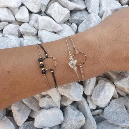 TURMALIN/Bergkristall Doppelarmband *CIRCLE* 18k vergoldet