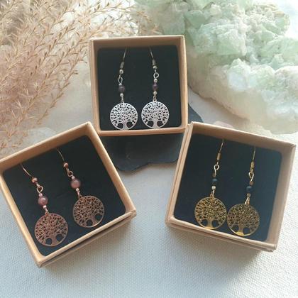 Zarter Ohrschmuck in 3 Varianten Lebensbaum aus hochwertigem Messing (plattiert) Durchmesser: 14mm Ohrhaken aus: - 925 Sterlingsilber - vergoldetem 925 Sterlingsilber - rosévergoldetem Edelstahl Mit 4mm Turmalinperle