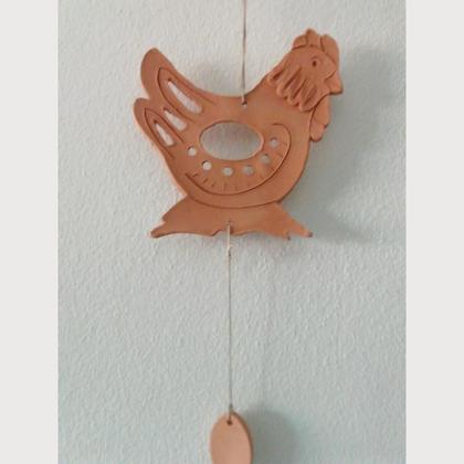 Huhn zum Hängen in Terrakotta-rot. Als Deko an der Wand oder in Verbindung mit einem Türkranz. Die Größe ist 18 x 18 x 0,8 cm
