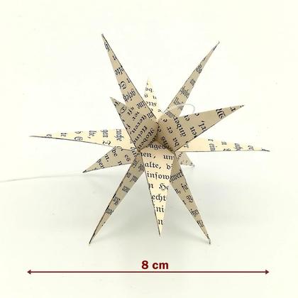 Weihnachtsschmuck aus alten Buchseiten - die alte Schrift darauf macht den 3D-Stern noch reizvoller. Ich stelle den Stern komplett in Handarbeit her.