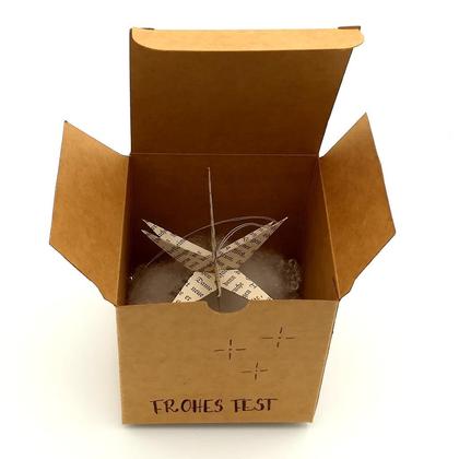 Geliefert wird der Stern in einer eigenen, dekorativ verzierten Box, in der er dann nach Weihnachten auch wieder sicher verstaut werden kann.
