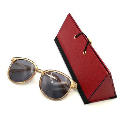 Durch die dreieckige Form ist das Brillenetui auch für größere (Sonnen-)Brillen geeignet: Die Brille am Foto ist z.B. ca. 5,5 cm hoch (Brillenglas), sie hat aber nach oben noch Luft.