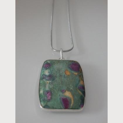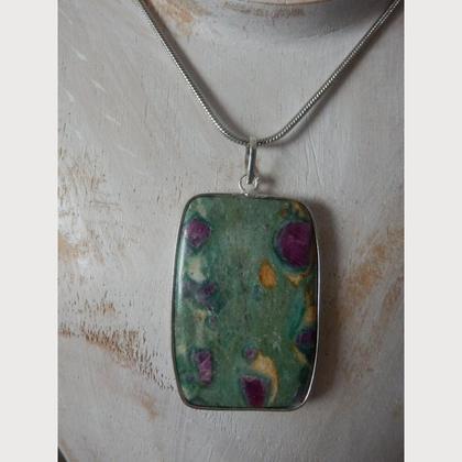 Halskette Edelstahl – mit Rubin-Zoisit Anhänger