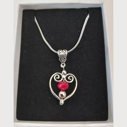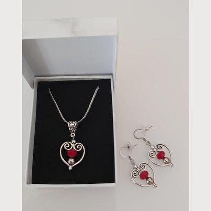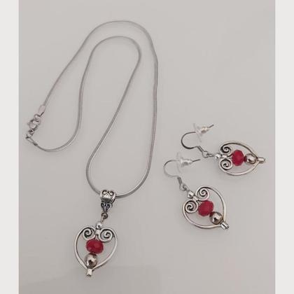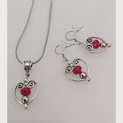 Schmuckset – Trachten Halskette und Ohrringe – rot – Edelstahl