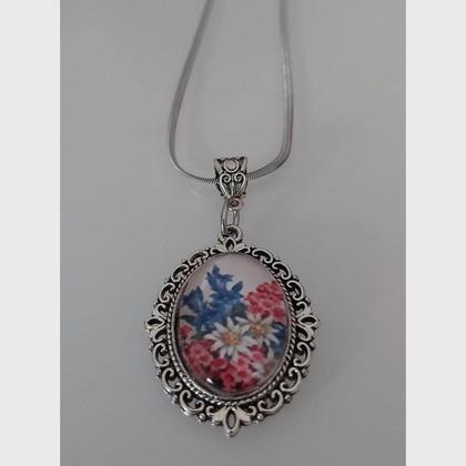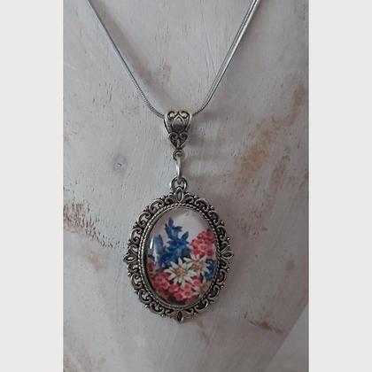 Trachtenhalskette Edelstahl – mit Nostalgieanhänger „Alpenblumen“- Unikat