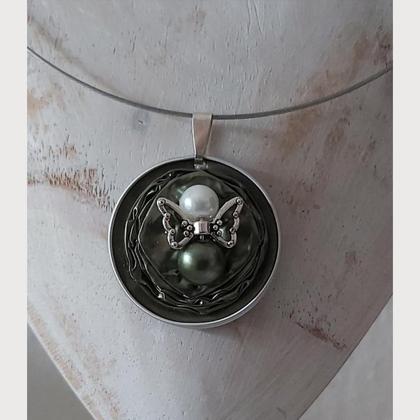 upcycling: Halskette, Halsreif mit Anhänger aus Kaffeekapseln – grün