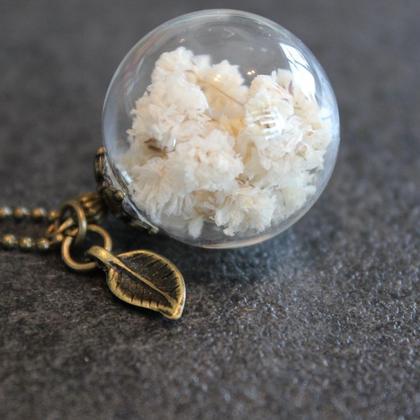 Glashohlkugel gefüllt mit selbst getrocknetem Schleierkraut Kugelgröße: Durchmesser 2,5 cm Kettenlänge: 75 - 80 cm Hochwertige Kette die NICHT abfärbt Die Verschlusskappe und der Anhänger variiert. Falls ein bestimmtes Anhängermotiv gewünscht wird, kann gerne bei mir erfragt werden ob ich das im Sortiment habe. Bestellen kann ich alles, nur dauert es dann länger bis ich es verschicken kann. Versandkosten innerhalb Österreich: € 4,90 Deutschland: € 10,-